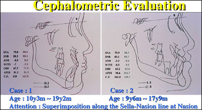 初診診断時にこのことが予測出来ていた場合、異なった対応策がなされていたと思います。特に症例2では、早期治療で上顎急速拡大装置と上顎前方牽引装置の併用を積極的に行なう考え方と、早期治療を行なわずに経過観察を行なって、外科矯正治療を視野に入れた対応をする考え方の2種類が考えられます。さて、その選択をする場合の根拠は何でしょうか?