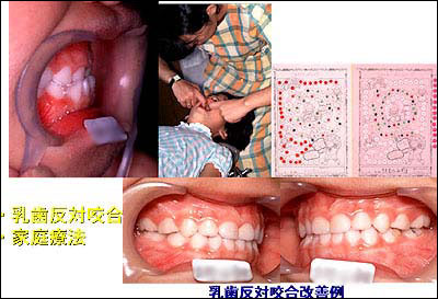 乳歯反対咬合者は出来るだけ、ウ触予防や治療勧告を始めとして、下顎の後退位を訓練付けすることも、大切です。以下に実際の臨床例をお示しします。これらは、あくまでも自然治癒の機会を増やすといった意味合いから実行している事です。
