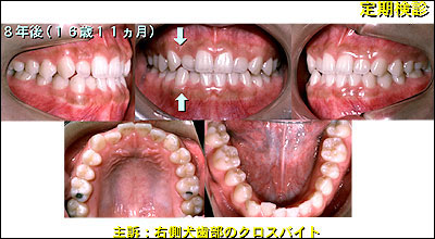 家庭療法(自律矯正法)で反対被蓋が改善され、その後8年間にわたって経過観察のために定期検診を続けていきました。